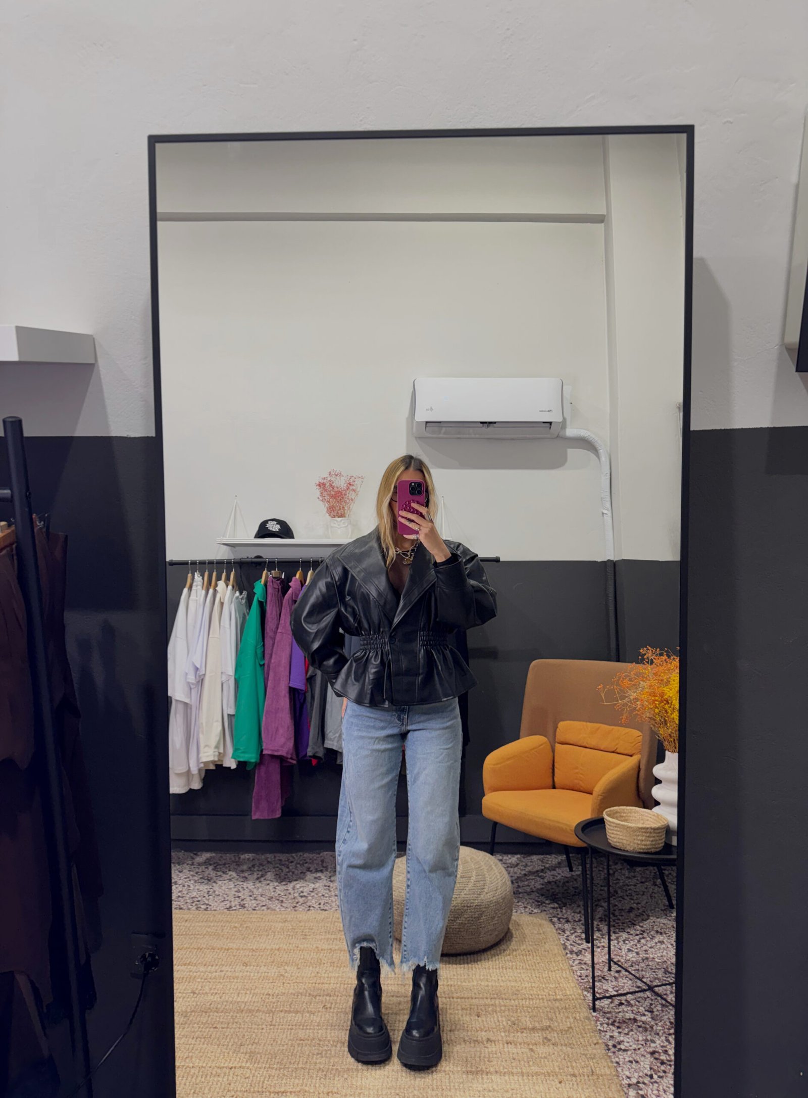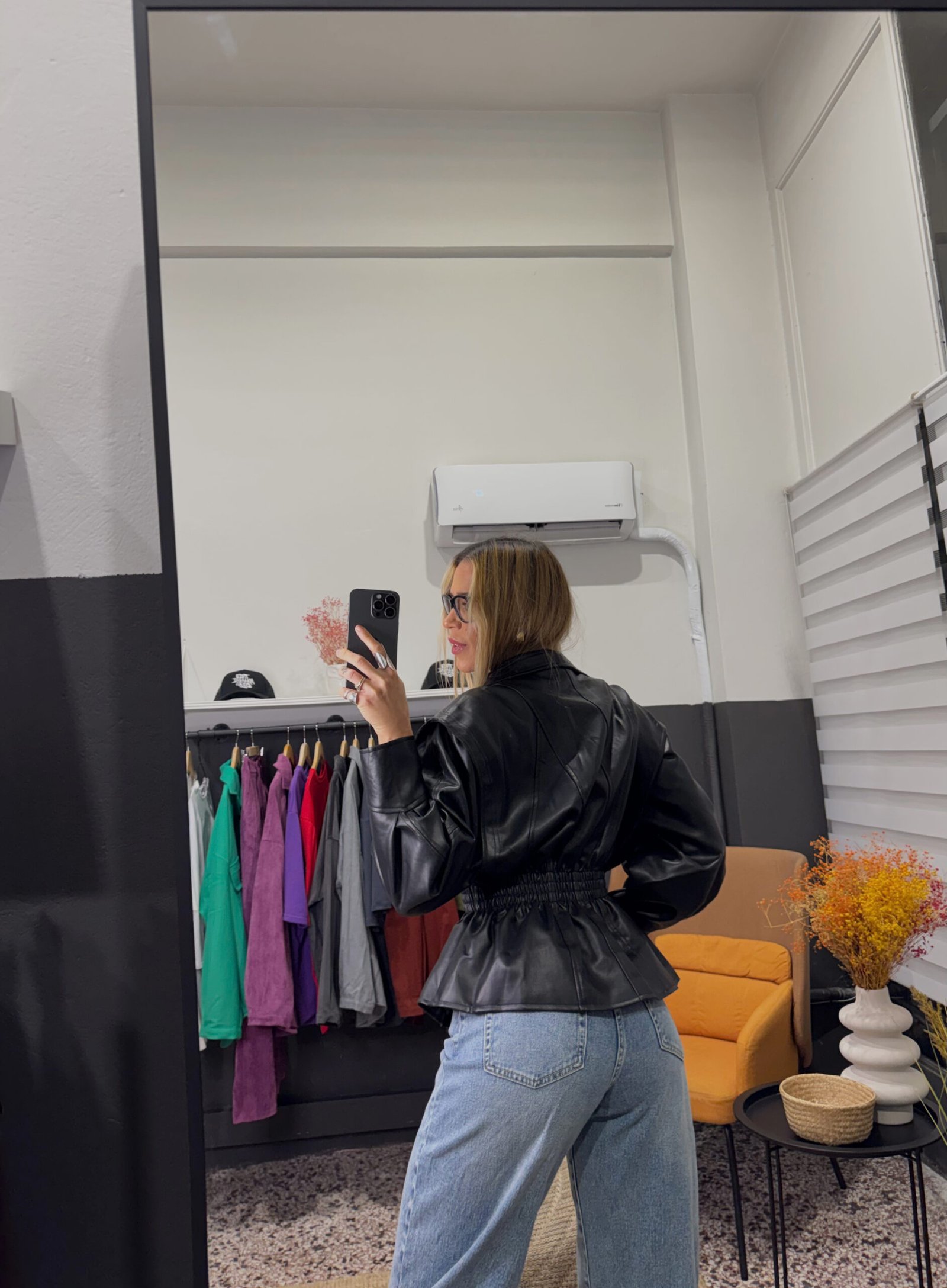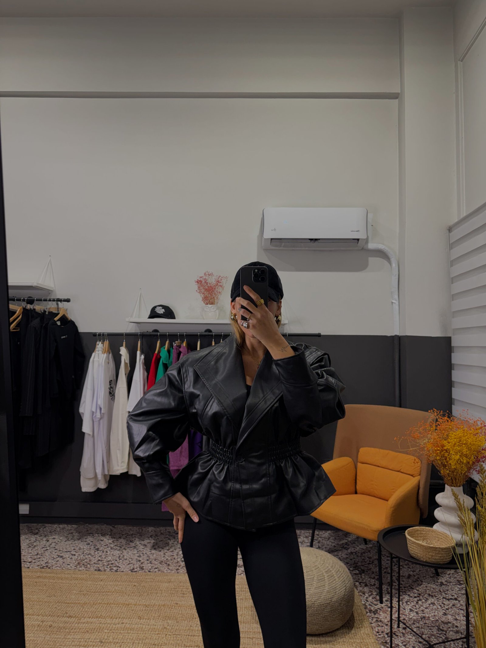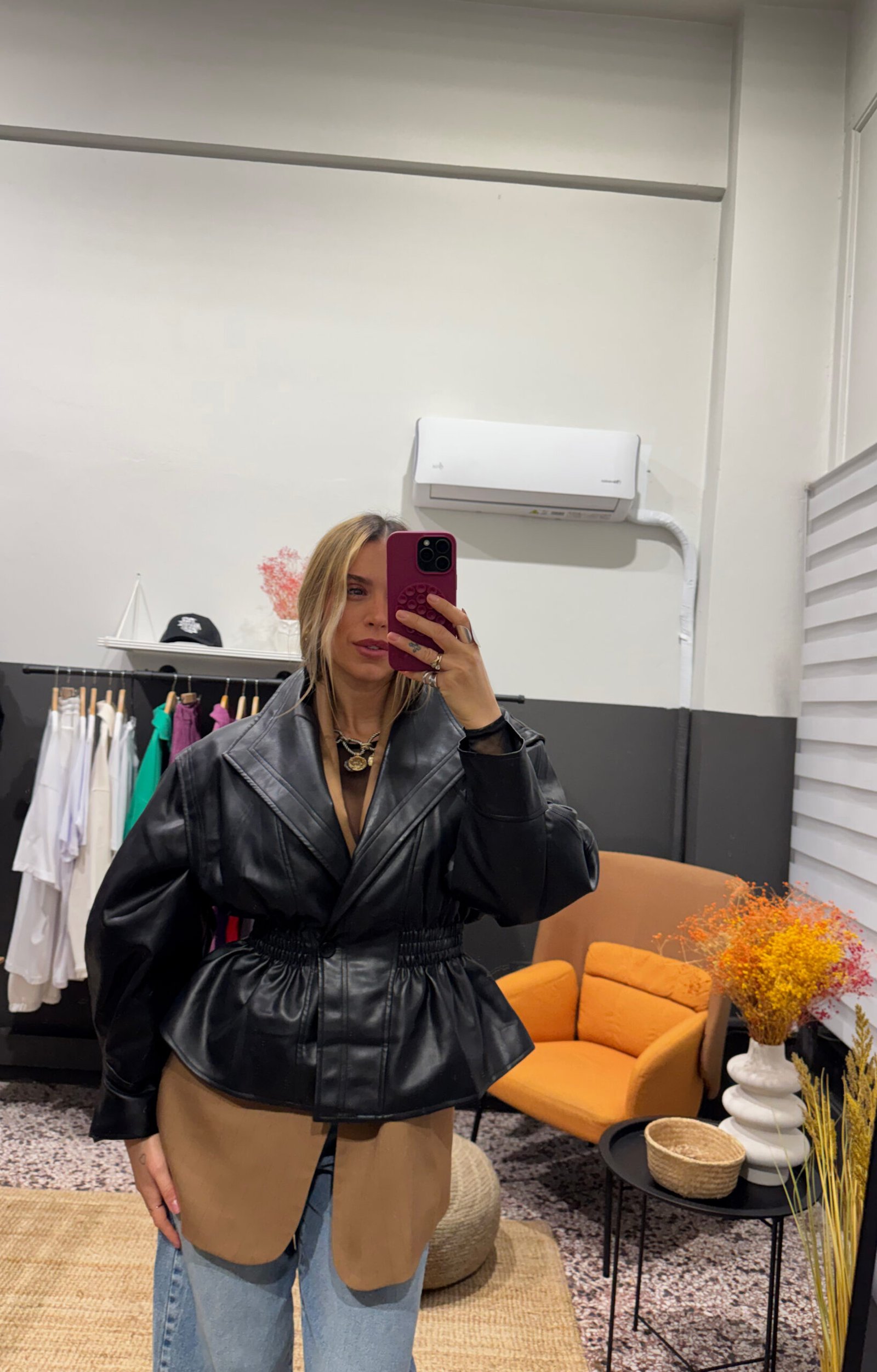 Faux leather Elastic Waist Jacket - TOHHO clothes