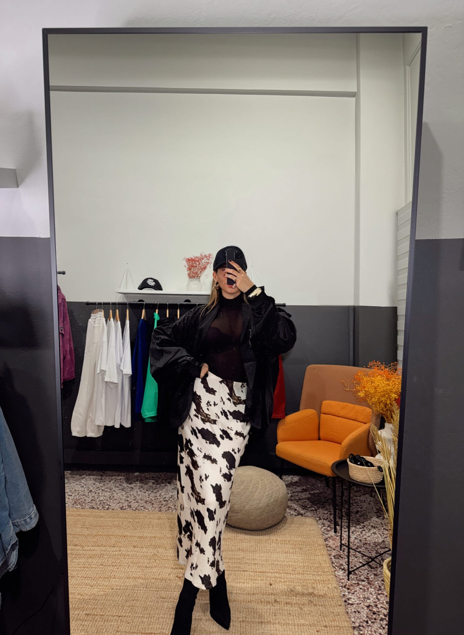 Ψηλόμεση midi φούστα με εντυπωσιακό abstract print, που προσφέρει κομψό και σύγχρονο αποτέλεσμα. Αγκαλιάζει το σώμα χωρίς να περιορίζει την κίνηση και αποτελεί ιδανική επιλογή για καθημερινά αλλά και πιο statement looks